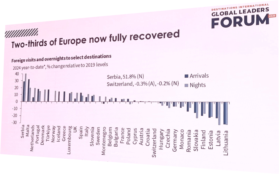 Srbija, koja je na „Global Leaders Forumu“ (11.02.2025, Dablin) prepoznata kao jedna od vodećih zemalja kada je reč o rastu turističkog prometa, prema podacima Narodne banke Srbije u januaru 2025.godine imala je devizni priliv od turizma od 240 miliona evra, odnosno bio je za 11% veći u odnosu na januar prethodne godine. Prema podacima Republičkog zavoda za statistiku broj dolazaka turista porastao je za 16,1%, a broj noćenja koja su ostvarili strani turisti porastao je za 18,6%. U međuvremenu politička situacija u zemlji je postala nestabilna, tako da je prema iskustvima YUTE i HORES-a broj otkaza dolazaka turista, ne toliko iz Regiona koliko iz ostalih delova sveta, između 28% i 40%.